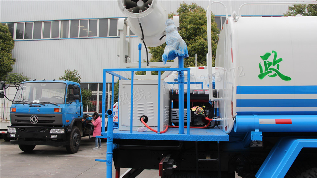 霧炮灑水車,又稱為多功能綠化灑水車。用于城市道路、大型廠區、部隊、園林等單位清潔路面、衛生、防塵、澆水、噴灑農藥等,以達到美化環境的作用。該車加裝風送式噴霧機組,可用于工地降塵,農場打藥等。灑水車由以下幾部分組成:專用車底盤、罐體、管道系統、操作系統。