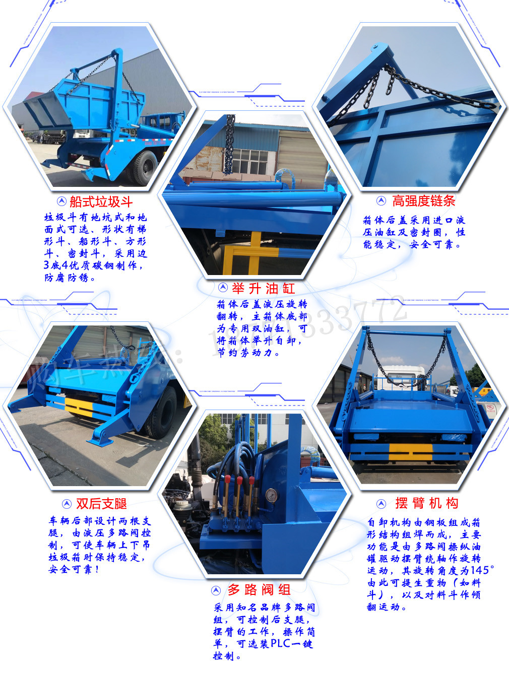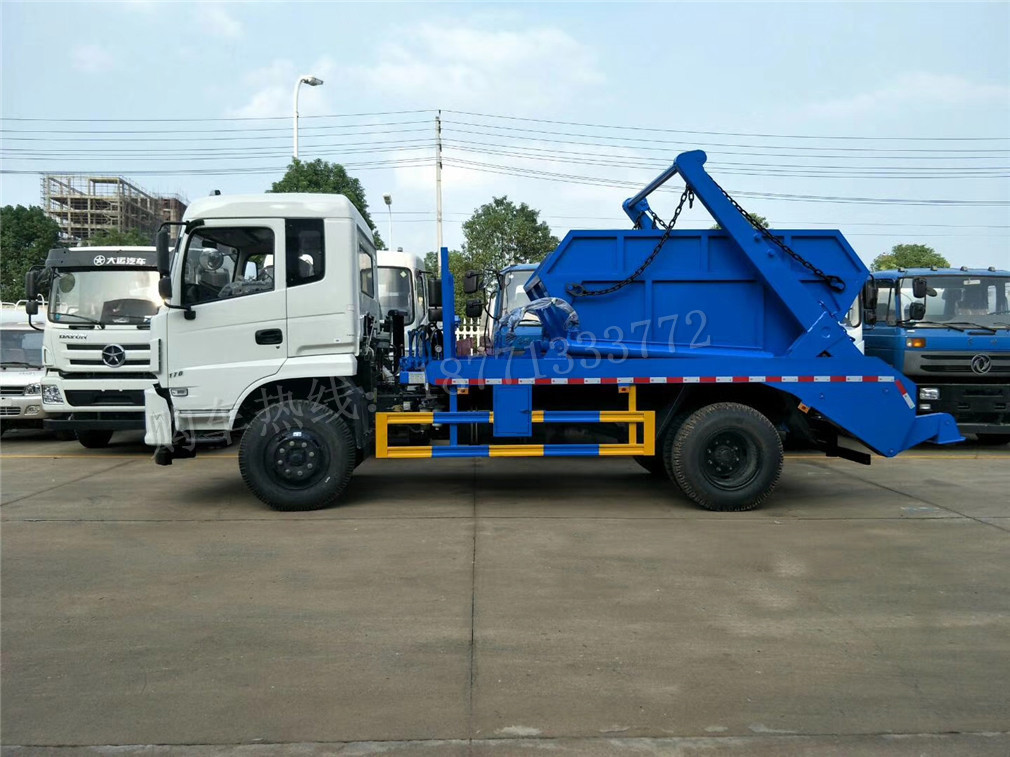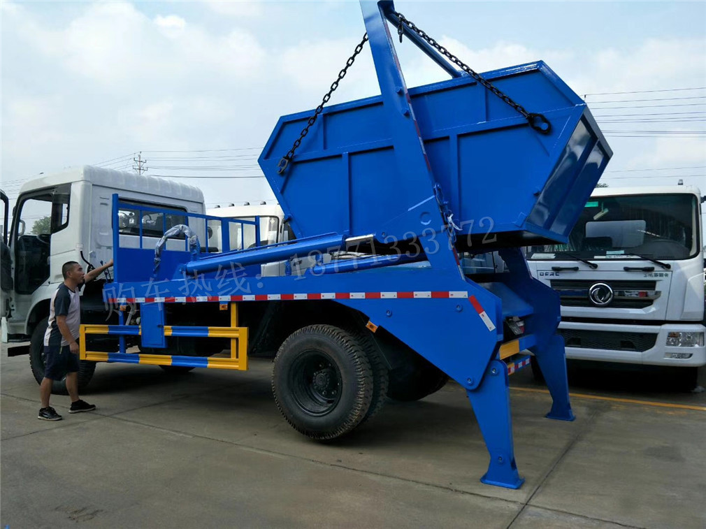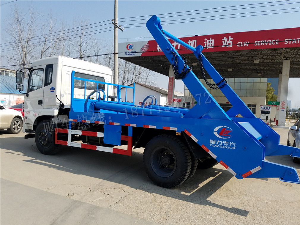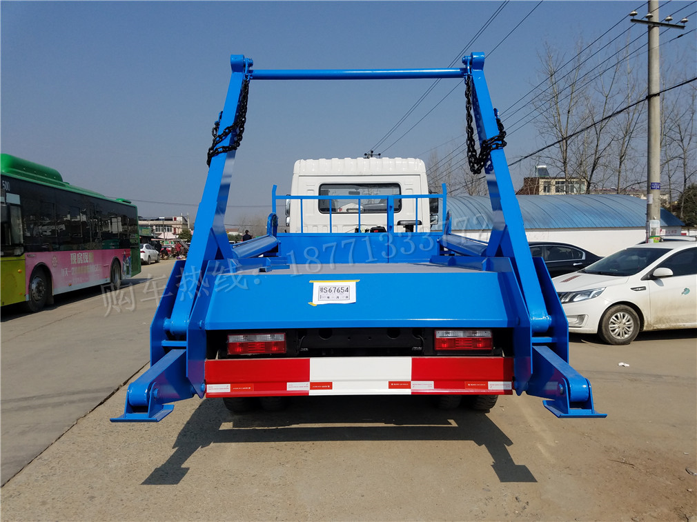 擺臂式垃圾車適用全國通用垃圾斗,帶自卸功能,液壓操作,垃圾斗可自吊上吊下,擺臂一次工作循環時間:60S。該車的特點是貨斗與車體分開,能實現一臺車與多個貨斗聯合作業,循環運輸,充分提高了車輛的運輸能力,特別適用于短途運輸,如環衛部門對城鎮垃圾的清理、運輸等。