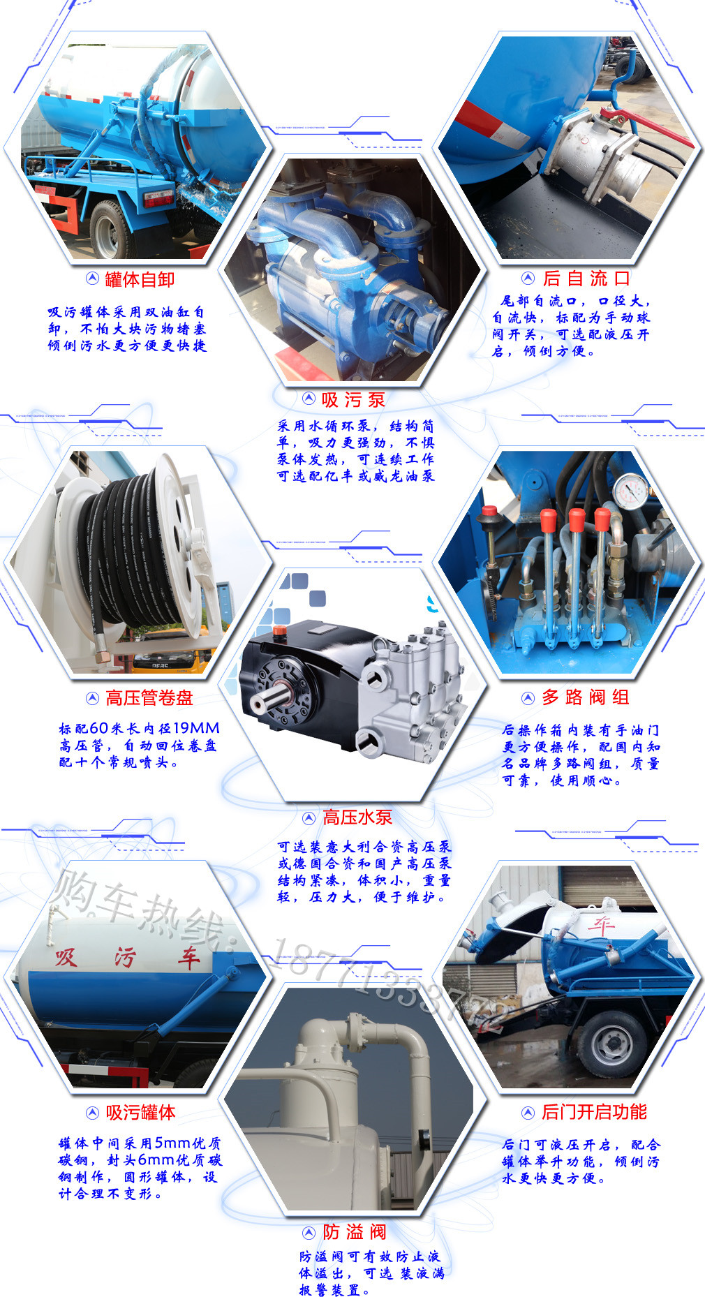 罐體有效容積5.81立方米,運(yùn)輸介質(zhì):液態(tài)污物,密度:900千克/每立方米;直段長4000mm,直徑1300mm.側(cè)防護(hù)材料為Q235,聯(lián)接方式為連接支架固焊在付車架大梁上.后防護(hù)材料為Q235,連接方式:用結(jié)構(gòu)連接件固焊在主車后端,后部防護(hù)裝置斷面尺寸(寬×高)50×130(mm),后部防護(hù)離地高度:490mm.整車長/軸距對(duì)應(yīng)關(guān)系為(mm):7150/3950;7000/3800;6850/3650.隨底盤選裝同系列排半駕駛室,前面板等新風(fēng)格.ABS型號(hào)為3631010-C2000,生產(chǎn)廠家為東科克諾 |