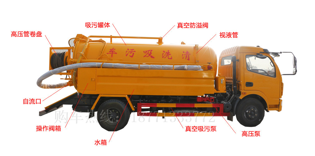 吸污車是收集、中轉清理運輸污泥、污水,避免二次污染的新型環衛車輛,吸污車可自吸自排,工作速度快,容量大,運輸方便,適用于收集運輸糞便、泥漿、原油等液體物質。吸污車采用國內技術領 先的吸污車真空泵,吸力大,吸程遠,特別適合用于下水道內的淤積物的抽吸、裝運和排卸,尤其是可 吸下水道泥漿、淤泥、石子、磚塊等較大物體 。
