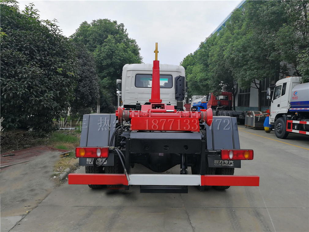 車廂可卸式垃圾車采用高新設計可擺得鉤臂,一車可帶多個大廂,裝卸方便,實現車廂的二次吊裝并使機構最為省力,具有結構簡單,操作穩定方便,高效率裝卸,節省人力等優點。鉤臂垃圾車可根基用戶要求配備若干個垃圾轉運箱。轉運箱可作為一個簡易、美觀、環保的垃圾轉運站,最大限度提高了車輛的使用效率。
