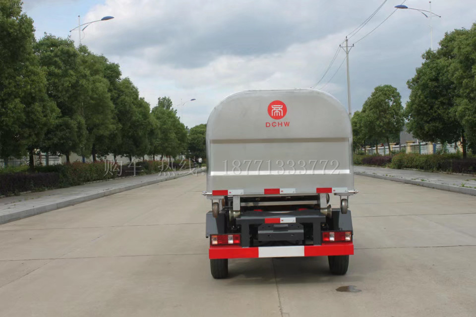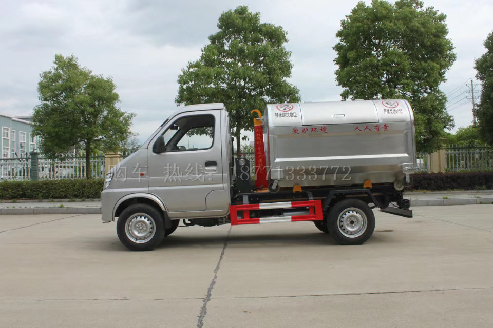 車廂可卸式垃圾車采用高新設計可擺得鉤臂,一車可帶多個大廂,裝卸方便,實現車廂的二次吊裝并使機構最為省力,具有結構簡單,操作穩定方便,高效率裝卸,節省人力等優點。鉤臂垃圾車可根基用戶要求配備若干個垃圾轉運箱。轉運箱可作為一個簡易、美觀、環保的垃圾轉運站,最大限度提高了車輛的使用效率。
