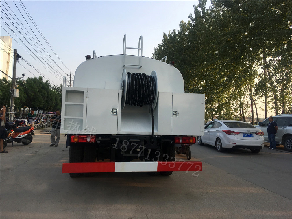 隨底盤選裝駕駛室。該車通過取力器帶動(dòng)高壓泵工作,高壓泵將普通的水轉(zhuǎn)化為高壓低流速的水,然后輸送到高壓管路,使其以一定的能量到達(dá)高壓噴嘴進(jìn)行清洗工作.罐體有效容積8.19立方米,罐體外形尺寸(長(zhǎng)度×長(zhǎng)軸×短軸)(mm):3800(罐體實(shí)際總長(zhǎng)5000,其中1200用于安裝附件類)×2200×1380.介質(zhì)名稱:水,介質(zhì)密度:1000千克/立方米.可選裝前噴水裝置,不裝前噴水裝置時(shí)整車長(zhǎng)為:8050mm。選裝前部噴水裝置時(shí),整車長(zhǎng)度為(mm):9000,前伸為(mm):950,整車長(zhǎng)/軸距/后懸對(duì)應(yīng)關(guān)系為(m |