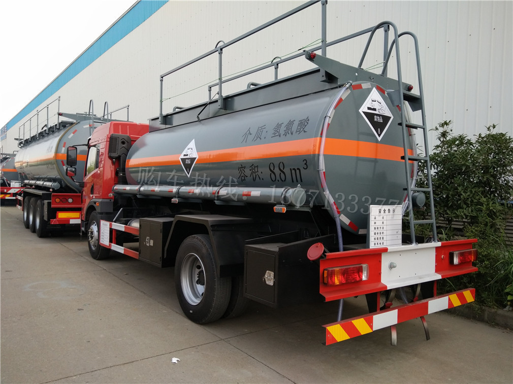 腐蝕性物品罐式運輸車可根據化工液體介質選用不銹鋼、內襯橡膠、滾塑、玻璃鋼、塑料罐(聚乙烯、聚丙烯)鋁罐、碳鋼等材質,可選用離心泵、齒輪泵、銅芯齒輪泵、不銹鋼泵、單計數、雙計數回零流量表、食用油品電腦計量器、加熱管、保溫層等。腐蝕性物品罐式運輸車除了上戶以外還需辦理營運證,因此購車前必須先找好危運公司掛靠,底盤必須安裝ABS、限速裝置、前盤制動裝置、鋼絲輪胎或真空輪胎;由于腐蝕性物品罐式運輸車上戶比較嚴格,除整車外形和整備質量要與合格證一致外,運輸介質也必須與合格證一致。