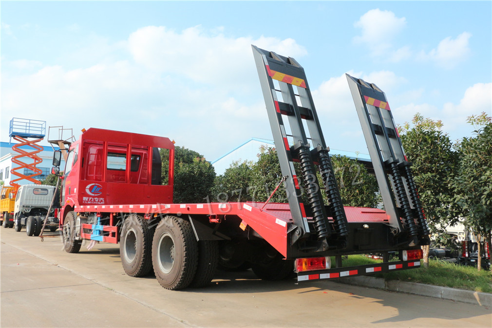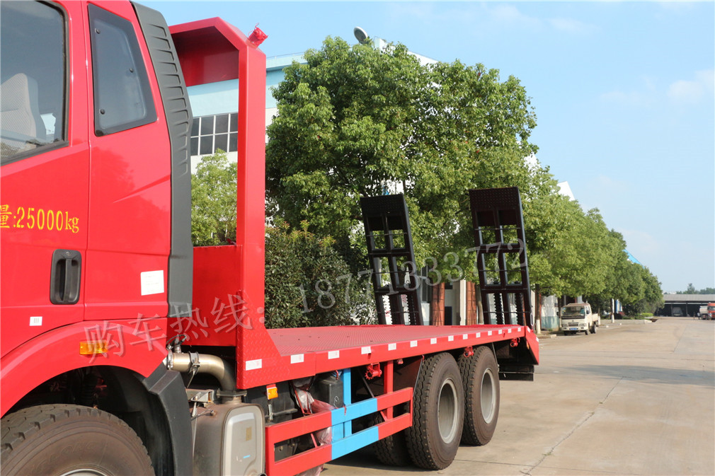 平板運輸車又名為工程機械運輸車、平板車、拖車,主要用于運輸一些像挖掘機,裝載機,收割機一樣的不可拆卸物體。平板運輸車是生活中常見的大型載重貨車,這種車一般被廣泛用于工廠,工地等大型生產或工程所在地,平板運輸車的承重能力強的特點使其在經濟發展過程中起了重要作用。
