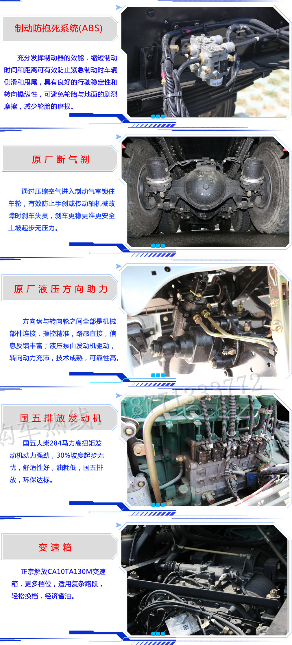 ABS系統生產廠家:浙江萬安科技股份有限公司,型號:VIE ABS-Ⅱ,安裝具有衛星定位功能的行駛記錄儀.發動機與油耗對應關系:(CA6DK1-26E51,CA6DK1-26E5).36.48,35.8 側,后面防護裝置的橫桿材料為Q235A,焊接連接,后下部防護斷面尺寸110×50mm,離地高度為460mm。整車長/軸距/后懸對應關系為(mm):9700/4300+1350/2650,9700/4350+1350/2600,9950/4350+1350/2850,9950/4600+1350/2600 |