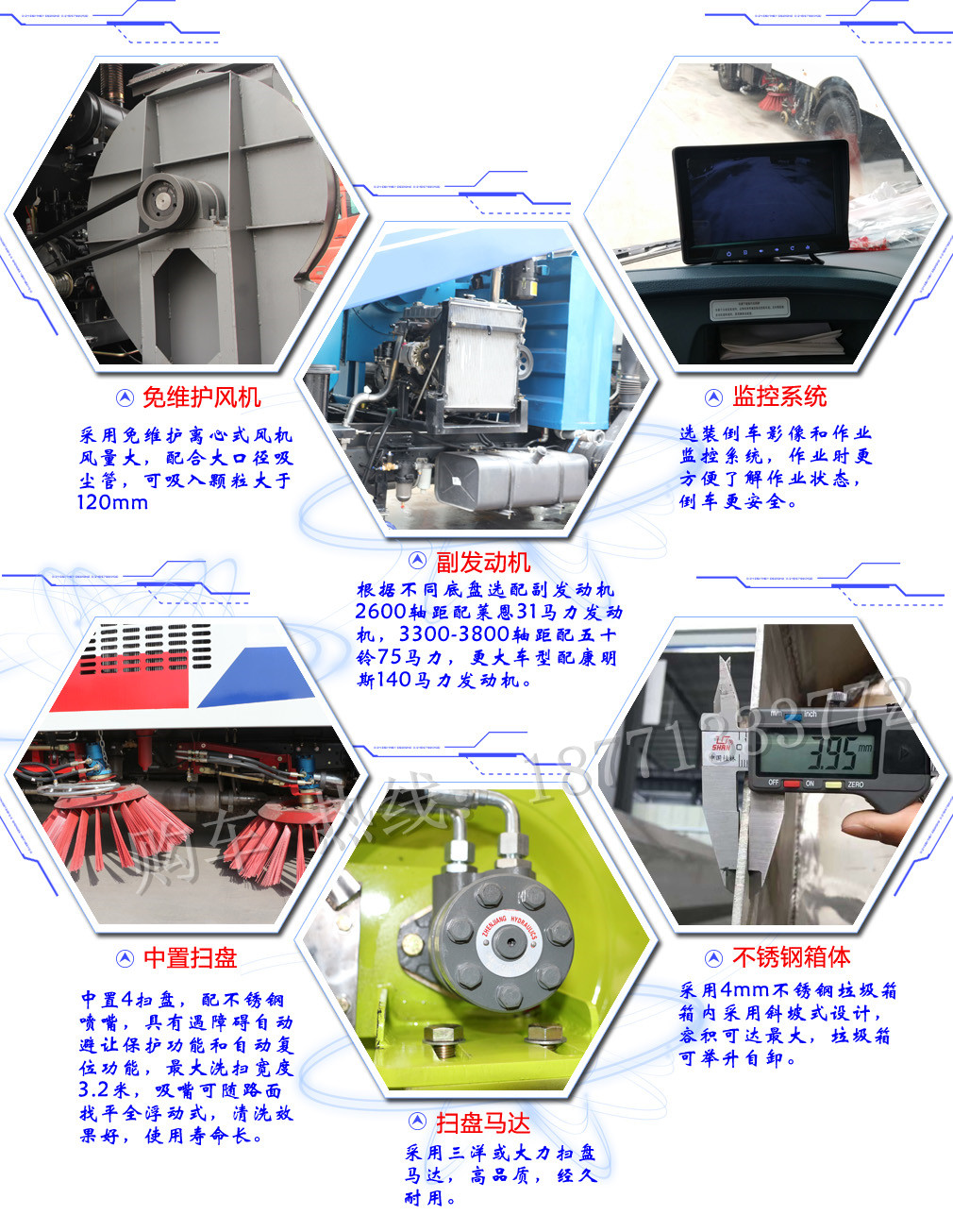 我公司吸塵車是國內首創的 “無二次揚塵污染、功能上優于傳統掃路車”的全新高科技產品!具有吸塵范圍廣、吸凈率高、吸口無二次揚塵、出風口無粉塵排放、工作效率高等優點,是環衛清潔及物料回收的優選產品。適用于于易產生揚塵污染的多粉塵、高濃度和大密度的工礦企業;適用于城市高架、快速道路及橋隧的快速清掃保潔;適用于城市主干道、高等級公路及高速公路的清掃保潔。