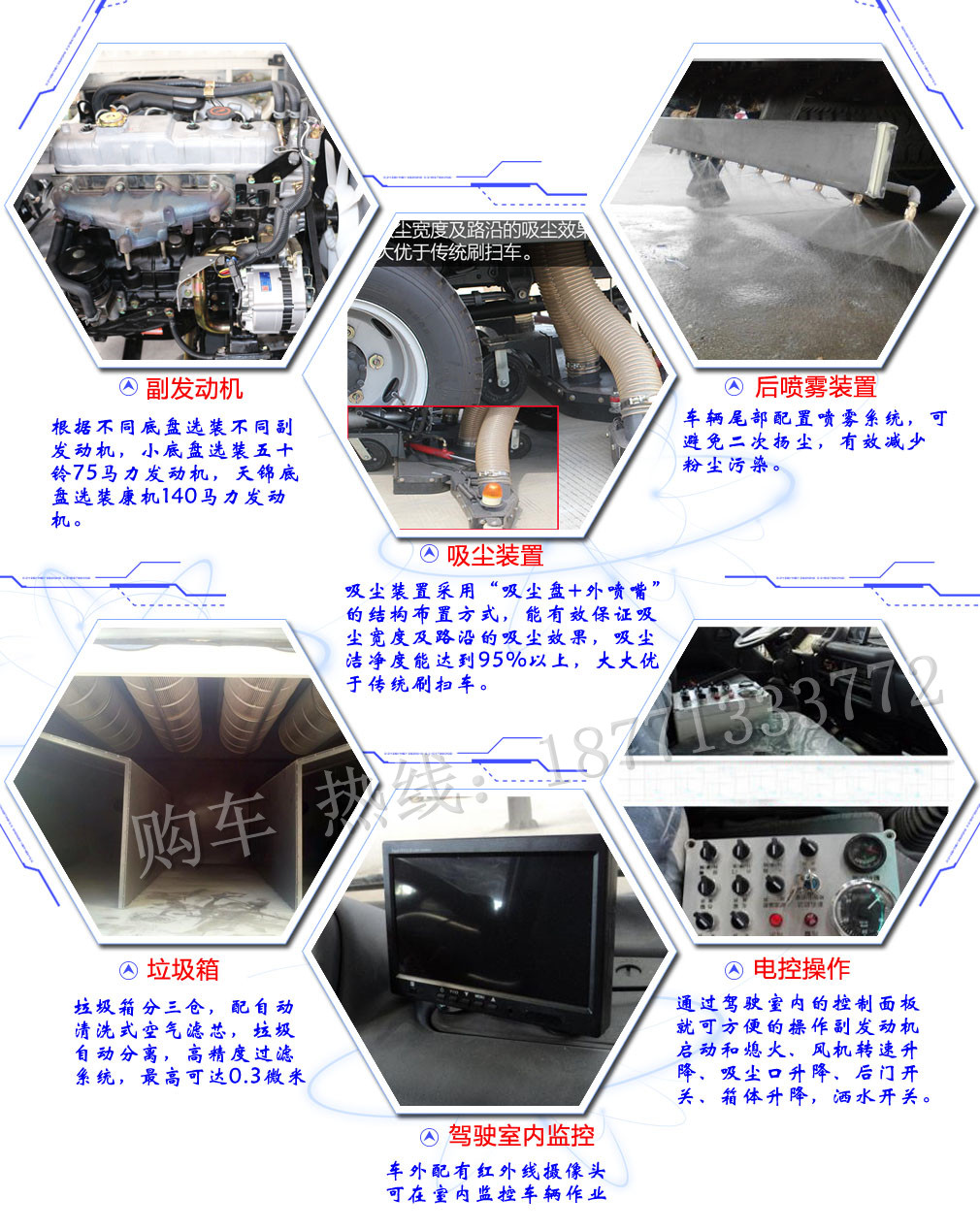 我公司吸塵車是國內(nèi)首創(chuàng)的 “無二次揚(yáng)塵污染、功能上優(yōu)于傳統(tǒng)掃路車”的全新高科技產(chǎn)品!具有吸塵范圍廣、吸凈率高、吸口無二次揚(yáng)塵、出風(fēng)口無粉塵排放、工作效率高等優(yōu)點(diǎn),是環(huán)衛(wèi)清潔及物料回收的優(yōu)選產(chǎn)品。適用于于易產(chǎn)生揚(yáng)塵污染的多粉塵、高濃度和大密度的工礦企業(yè);適用于城市高架、快速道路及橋隧的快速清掃保潔;適用于城市主干道、高等級(jí)公路及高速公路的清掃保潔。