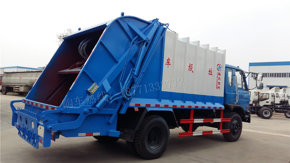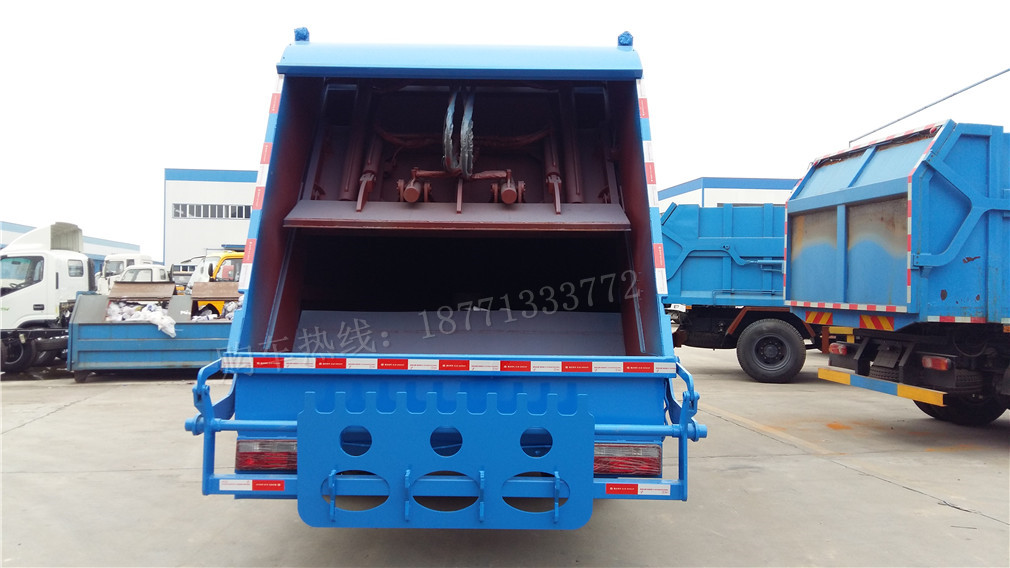 壓縮式垃圾車采用機電液一體化技術,借助機、電、液聯合自動控制系統,通過車廂、填裝器和推鏟等專用裝置,實現垃圾倒入、壓碎或壓扁、強力裝填,把垃圾擠入車廂并壓實和推卸。其主要特點是垃圾收集方式簡便、高效、具有自動反復壓縮以及蠕動壓縮功能,壓縮比高,裝載質量大,作業自動化,動力性、環保性好,整車利用效率高。