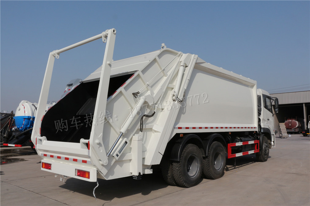 壓縮式垃圾車采用機電液一體化技術,借助機、電、液聯合自動控制系統,通過車廂、填裝器和推鏟等專用裝置,實現垃圾倒入、壓碎或壓扁、強力裝填,把垃圾擠入車廂并壓實和推卸。其主要特點是垃圾收集方式簡便、高效、具有自動反復壓縮以及蠕動壓縮功能,壓縮比高,裝載質量大,作業自動化,動力性、環保性好,整車利用效率高。