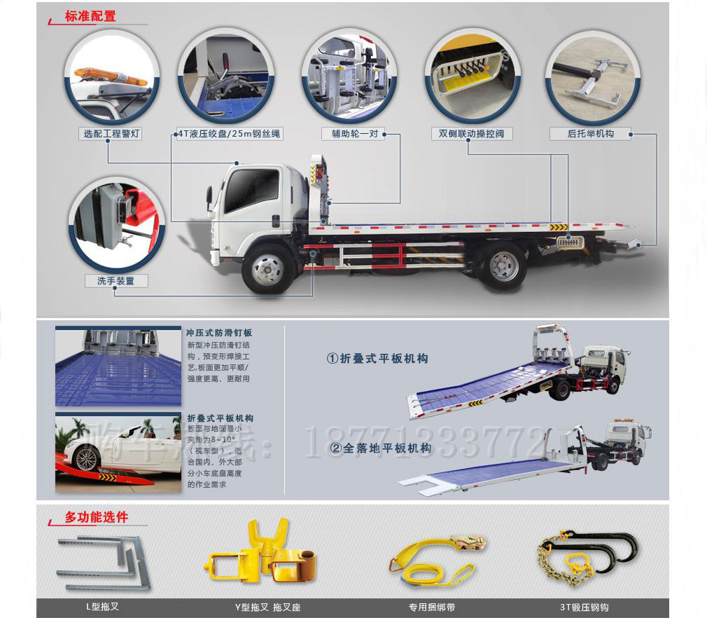 清障車(chē)全名為道路清障車(chē),又稱(chēng)拖車(chē)、道路救援車(chē)、拖拽車(chē),具有起吊、拽拉和托舉牽引等多項(xiàng)功能,清障車(chē)主要用于道路故障車(chē)輛,城市違章車(chē)輛及搶險(xiǎn)救援等。清障車(chē)按類(lèi)別主要分為:拖吊連體型、拖吊分離型,一拖一型,平板一拖二型,多功能清障車(chē),液壓自動(dòng)夾緊型